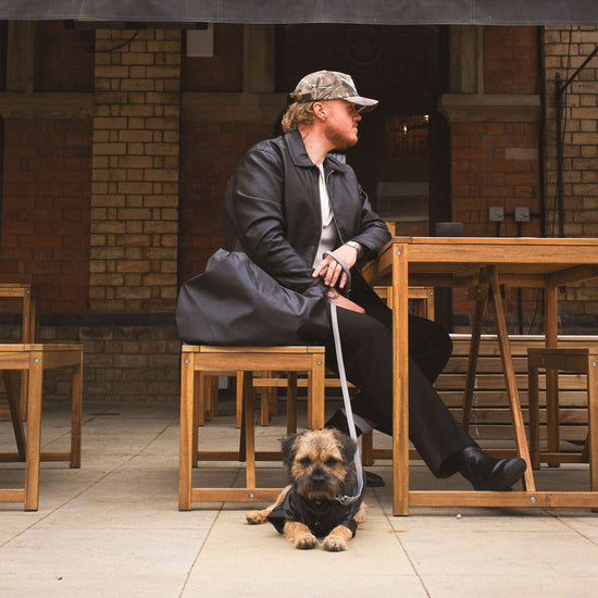 In a versatile black finish, this tote is built from recycled PU for durability and protection. The lined interior holds a zipped pocket, phone pouch, and poo-bag pouch, all secured with a press-stud fastening. Spacious and easy to carry, it’s a no-fuss essential that pairs effortlessly with your dog’s raincoat for a complete wet-weather look.