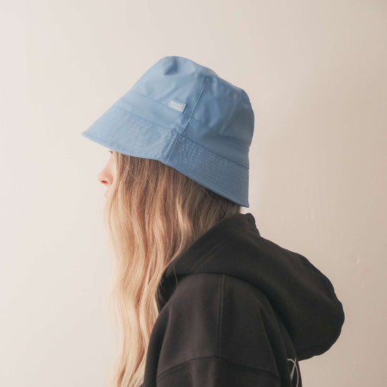 Timeless and dependable, the blue bucket hat is made from waterproof recycled PU